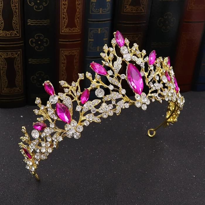 Distinguished Air Tiara mit Pflanzenformen, verziert mit Fuchsia oder Silberkristallen mit Strasssteinen.