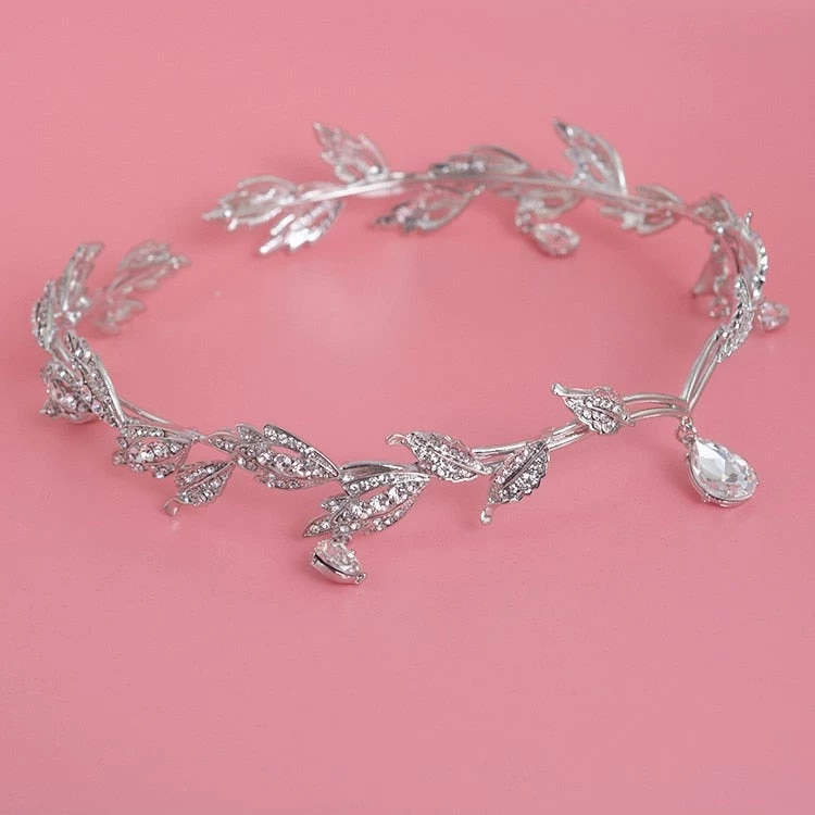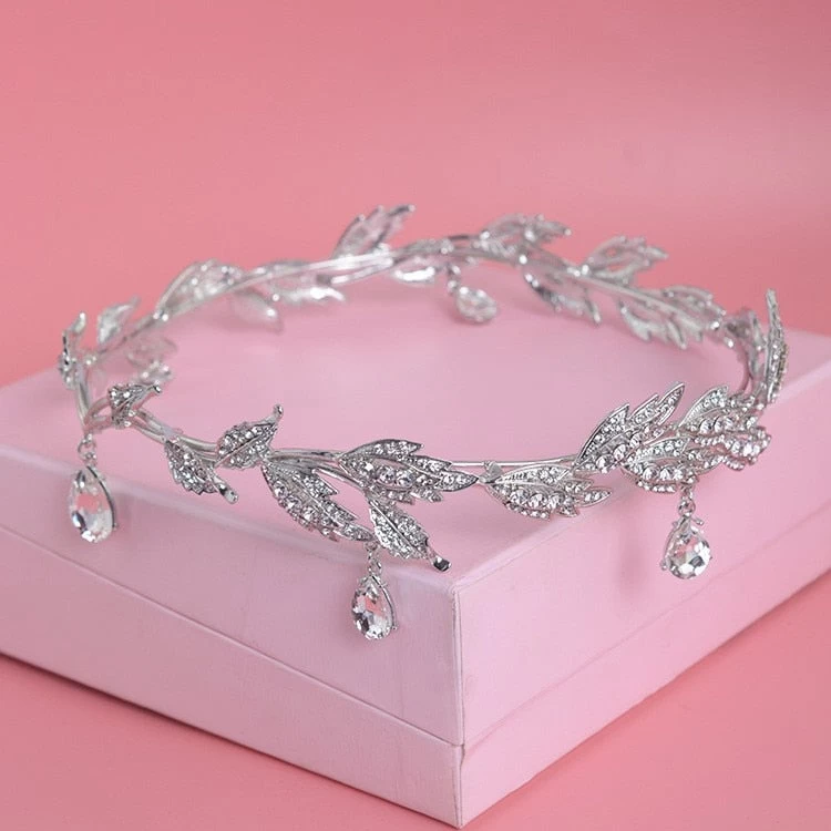 Blattförmige Tiara, inspiriert vom antiken Griechenland mit Kristallanhängern.