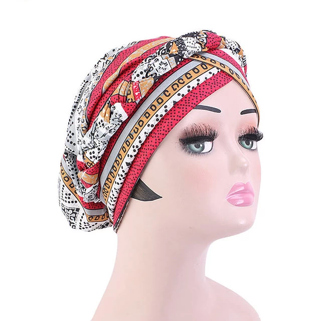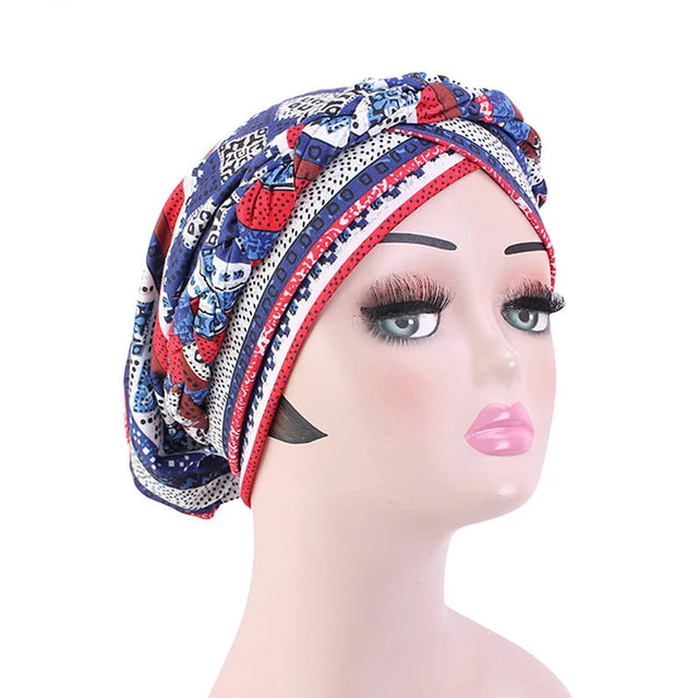 Lässiger Turban in Form einer Kochmütze in bunten Farben.