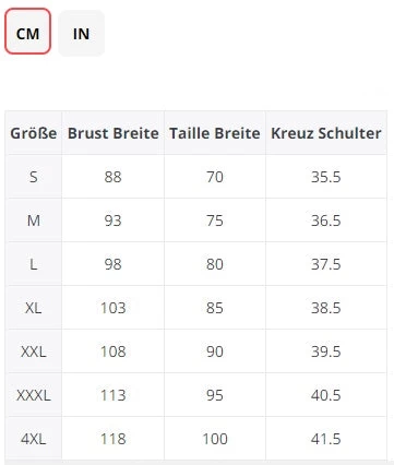 WICHTIG: Bitte überprüfen Sie die Größentabelle, bevor Sie Ihre Bestellung aufgeben.