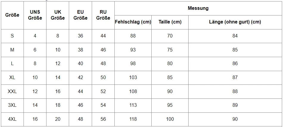 WICHTIG: Bitte überprüfen Sie die Größentabelle, bevor Sie Ihre Bestellung aufgeben.