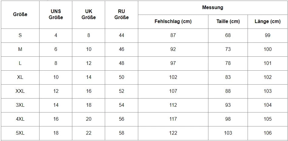 WICHTIG: Bitte überprüfen Sie die Größentabelle, bevor Sie Ihre Bestellung aufgeben.