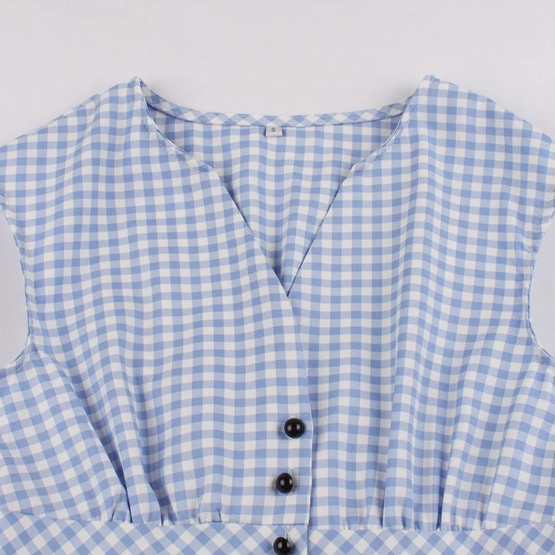 Elegantes ärmelloses Vintage-Kleid im Retro-Stil mit quadratischem Print.