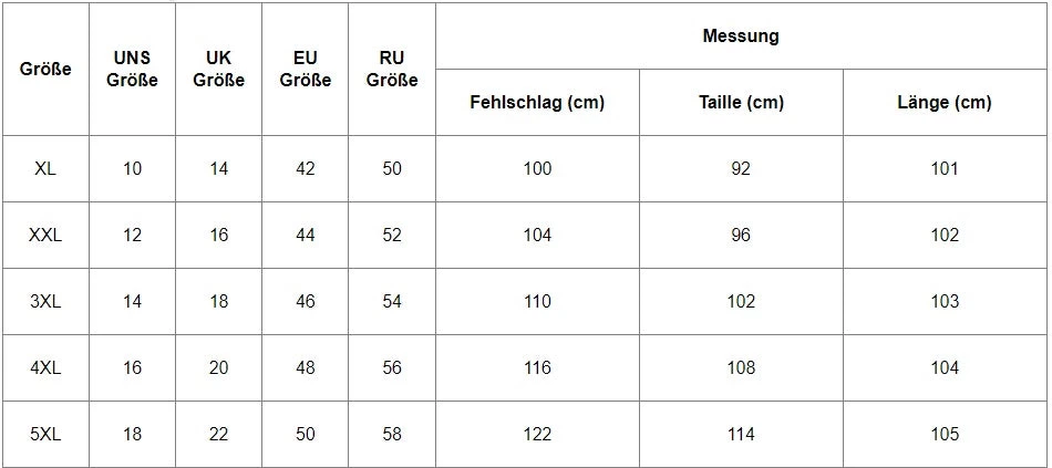 WICHTIG: Bitte überprüfen Sie die Größentabelle, bevor Sie Ihre Bestellung aufgeben.