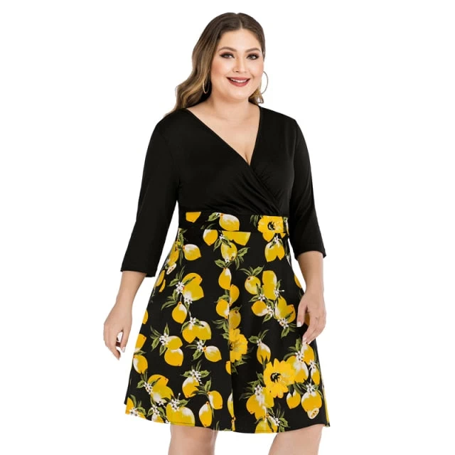 Elegantes Vintage-Kleid mit langen Ärmeln, Swing-Kleid 3/4, mit Zitronen-Print.