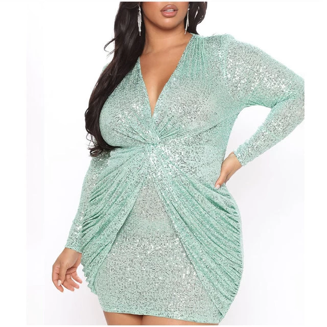 Vintage Kleid im sexy Stil mit V-Ausschnitt und glänzenden Pailletten.