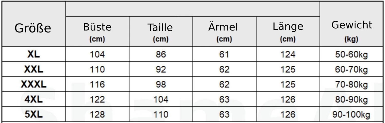 WICHTIG: Bitte überprüfen Sie die Größentabelle, bevor Sie Ihre Bestellung aufgeben.