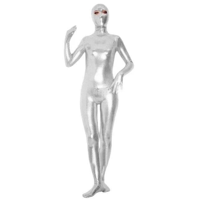 Schimmernder Zentai Anzug mit zwei Augenlöchern.